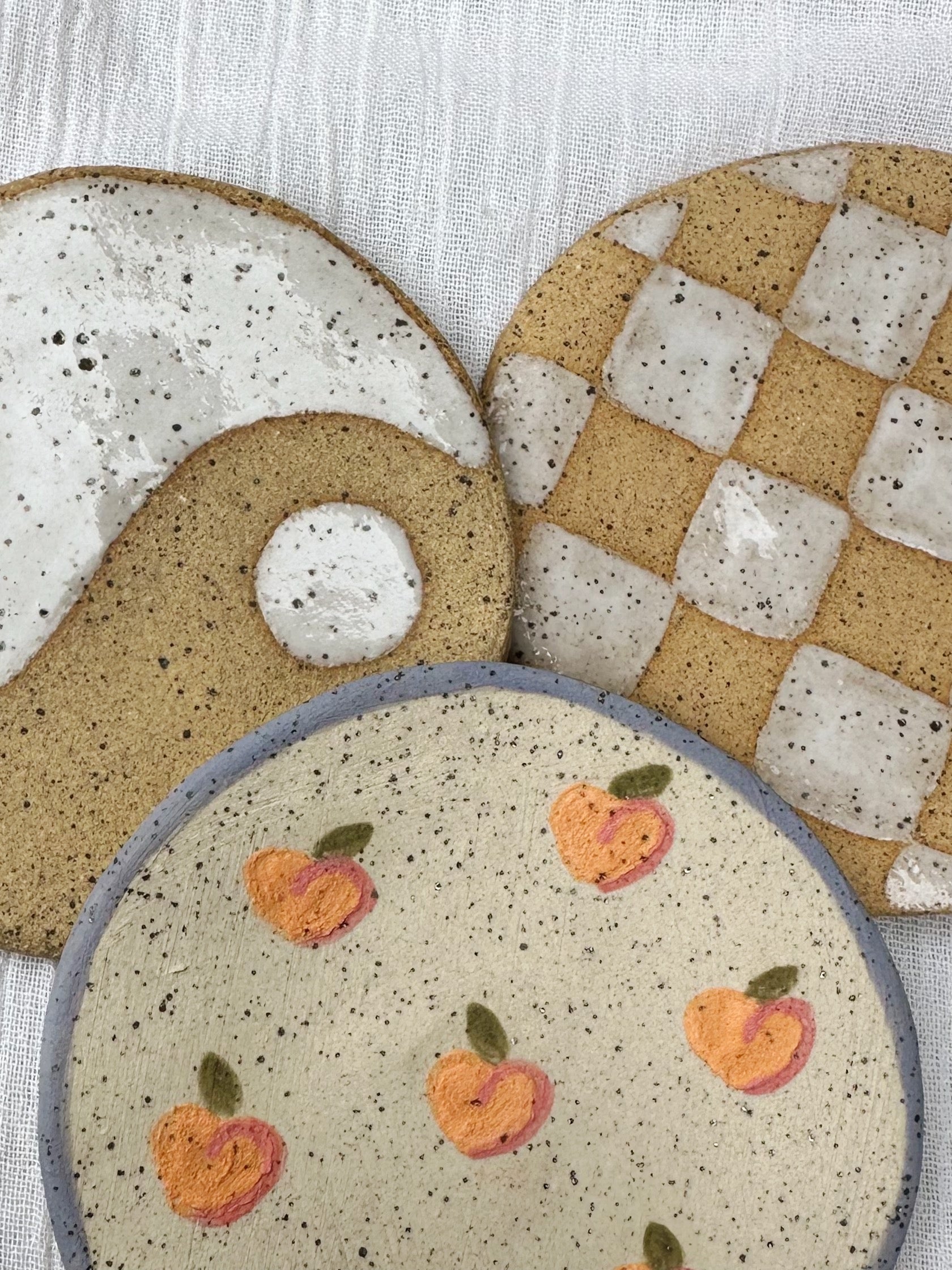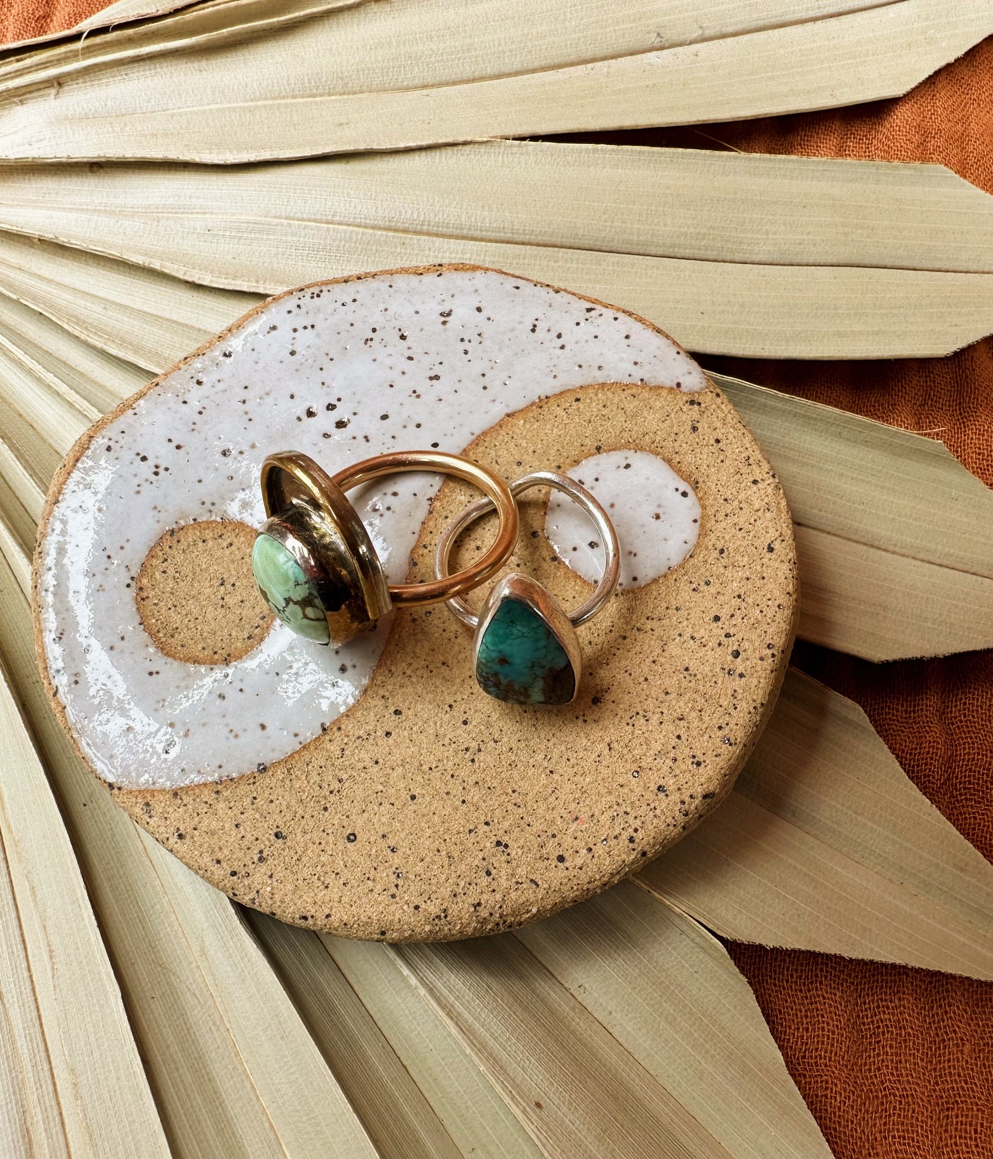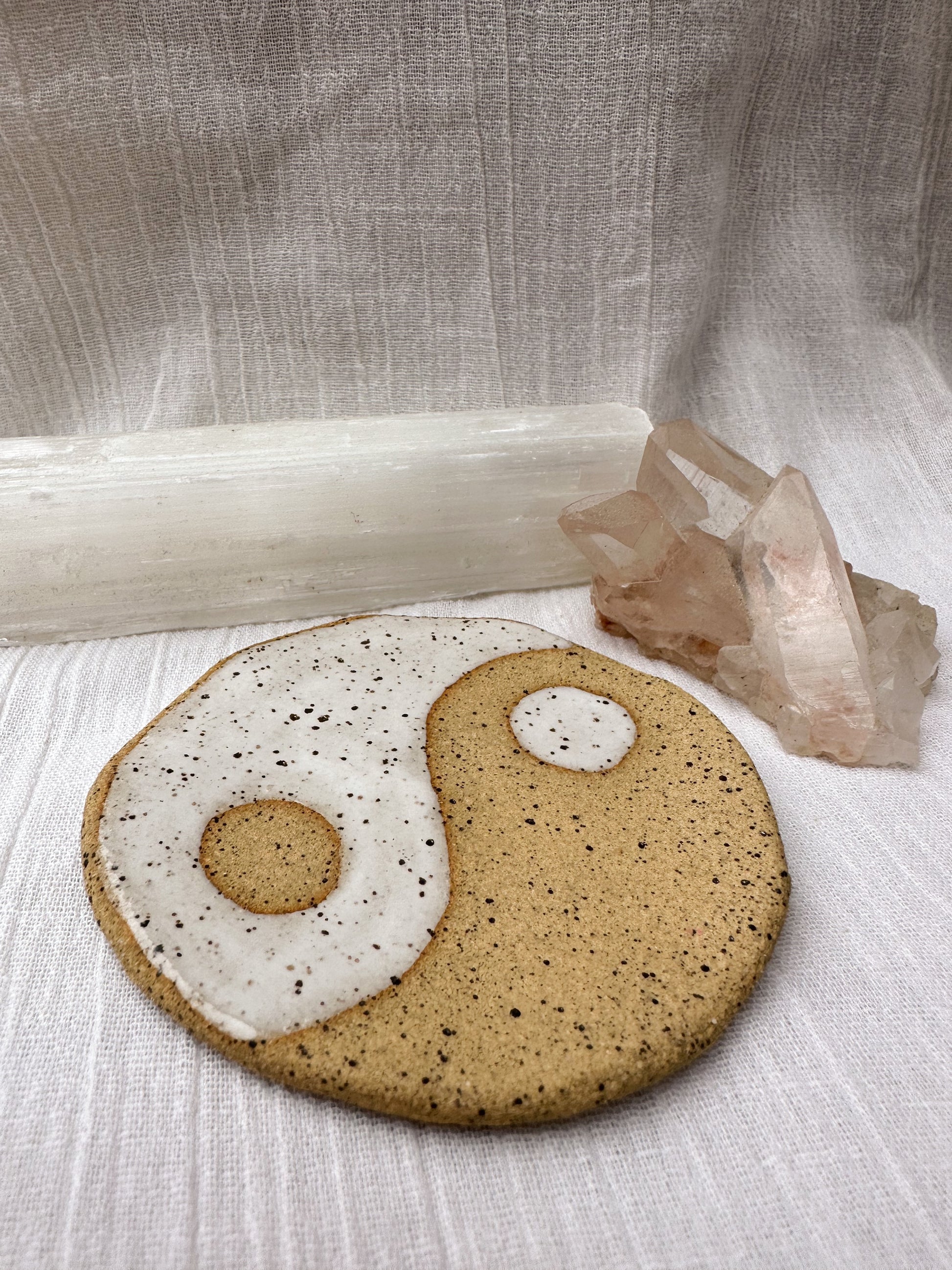 These little catchalls are perfect for all of your tiny treasures or just as a display piece. Each dish is approximately 3" and features a handprinted yin & yang.